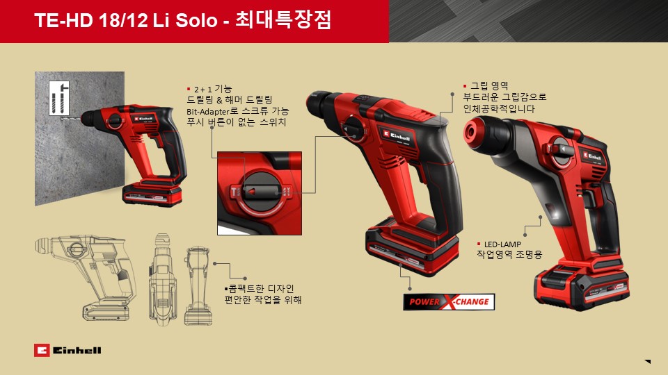 충전 해머드릴 Model. TE-HD 18-12 li Einhell 전동공구 목재 벽돌 콘크리트 드릴 작업용으로 드릴/해머드릴/스크류드라이버 기능의 2+1 성능에 속도 조절까지 가능한 제품 + 구매링크 바로가기